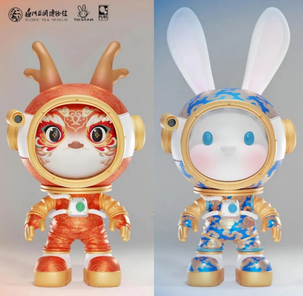 本月初,嫦娥六號探測器發(fā)射成功,中國探月工程官方IP形象“兔星星”的最新版本驚艷亮相。而這個(gè)龍年限定款“兔星星”的紋樣元素,就來自蘇州絲綢博物館館藏一級文物——褐色四合云紋暗花緞白鷴織補(bǔ)女衫,此次IP聯(lián)動,僅僅是蘇州絲綢博物館的合作案例之一。