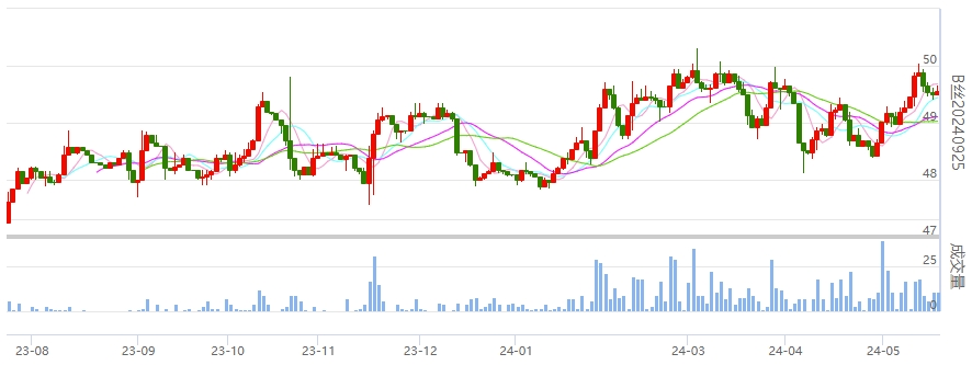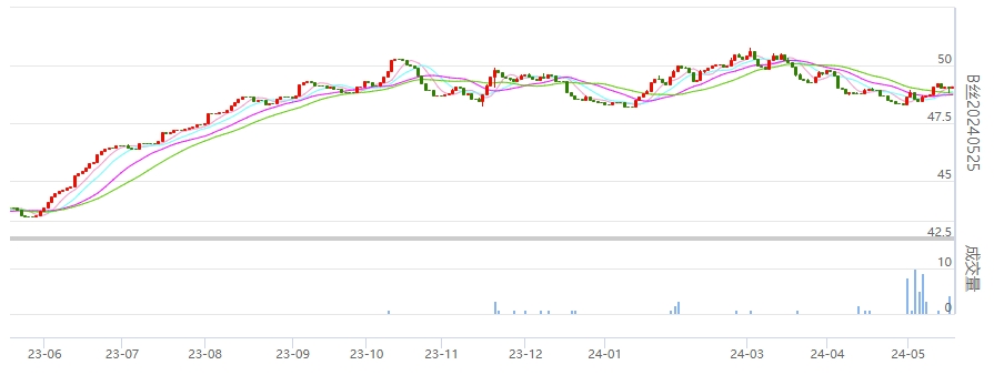 今日(2024年05月20日,周一)中國繭絲綢交易市場生絲指數(shù)微漲0.03%報(bào)于4951.84點(diǎn)。B絲(商檢4A級生絲):240525合約上漲0.03萬元報(bào)收于49.08萬元;240925合約上漲0.06萬元報(bào)收于49.56萬元;250325合約上漲0.03萬元報(bào)收于50.01萬元。