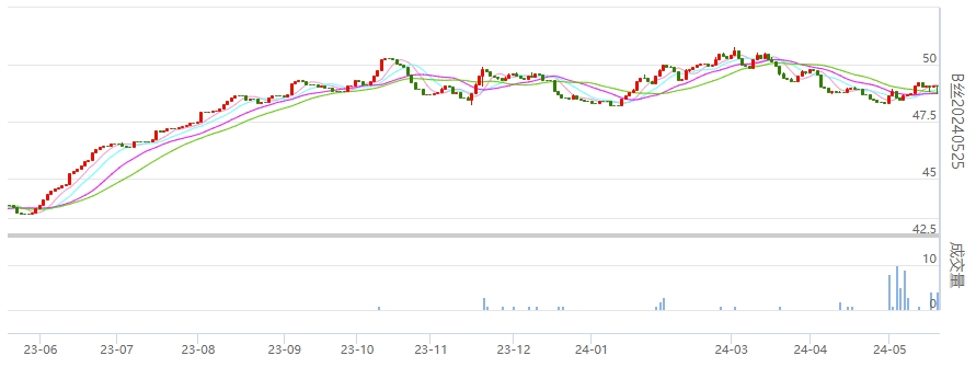 今日(2024年05月21日,周二)中國(guó)繭絲綢交易市場(chǎng)生絲指數(shù)持平報(bào)于4951.15點(diǎn)。B絲(商檢4A級(jí)生絲):240525合約報(bào)平收于49.08萬元;240925合約下跌0.03萬元報(bào)收于49.53萬元;250325合約上漲0.03萬元報(bào)收于50.04萬元。