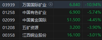 銅業(yè)股跌幅居前,萬國國際礦業(yè)跌近11%。消息面上,近日銅、鋁等主要有色金屬品種均迎來了一輪下跌行情。與此同時(shí),期貨市場上投機(jī)性多頭也出現(xiàn)減倉撤退信號。另一方面,由于銅作為龍頭品種高位回落,又對期鋁帶來壓力,情緒刺激下也似乎正引發(fā)多頭離場。