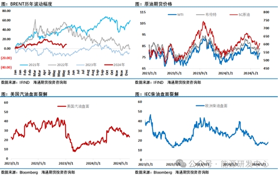 過(guò)去的一周三大機(jī)構(gòu)先后公布了6月份月報(bào),從各大機(jī)構(gòu)月報(bào)展望中我們看到了市場(chǎng)相對(duì)混亂的展望,尤其是對(duì)需求端的判斷,原油市場(chǎng)正處在一個(gè)變化的階段;另外上周還是重要的宏觀窗口,在前期加拿大、歐洲央行先后降息之后,圍繞美聯(lián)儲(chǔ)議息會(huì)議及系列經(jīng)濟(jì)數(shù)據(jù)的公布給整個(gè)金融市場(chǎng)帶來(lái)明顯的擾動(dòng)。油價(jià)在這個(gè)過(guò)程中也明顯受到了影響。不過(guò)最終能夠決定油價(jià)走向的還是目前市場(chǎng)抱有預(yù)期的三季度原油市場(chǎng)供需局面改善,這一點(diǎn)能否得到確認(rèn)對(duì)投資者信心來(lái)講非常關(guān)鍵,目前來(lái)看原油市場(chǎng)月差結(jié)構(gòu)穩(wěn)中回暖和成品油裂解差尤其是柴油裂解差走強(qiáng)對(duì)市場(chǎng)來(lái)說(shuō)是個(gè)積極因素,后續(xù)仍需進(jìn)一步跟蹤觀察原油市場(chǎng)供需層面能否進(jìn)一步改善,這也是接下來(lái)一段時(shí)間對(duì)油價(jià)影響最關(guān)鍵的因素。