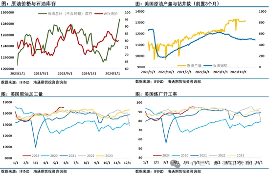 國(guó)際能源署IEA6月月報(bào)將2024年石油需求增長(zhǎng)預(yù)測(cè)下調(diào)10萬(wàn)桶/日至96萬(wàn)桶/日,而美國(guó)能源署EIA將2024年全球原油需求增速預(yù)期上調(diào)18萬(wàn)桶/日至110萬(wàn)桶/日(此前為92萬(wàn)桶/日)。這樣的預(yù)期調(diào)整讓市場(chǎng)有些意外,此前美國(guó)連續(xù)2個(gè)月下調(diào)了對(duì)原油需求預(yù)期,而本月月報(bào)中又進(jìn)行的大幅上修;而對(duì)需求判斷一直為市場(chǎng)質(zhì)疑的歐佩克,維持2024年和2025年全球原油需求增速預(yù)期分別為225萬(wàn)桶/日和185萬(wàn)桶/日不變。不過(guò)其還是將2024年第一季度的總石油需求預(yù)估值下調(diào)5萬(wàn)桶/日,至1.0351億桶/日;同時(shí)將2024年第二季度的預(yù)測(cè)值上調(diào)5萬(wàn)桶/日。并預(yù)計(jì)下半年全球石油需求增長(zhǎng)平均為230萬(wàn)桶/日,歐佩克認(rèn)為2024年下半年全球服務(wù)業(yè)將在旅游業(yè)的支持下成為經(jīng)濟(jì)增長(zhǎng)動(dòng)力的主要貢獻(xiàn)者,從而對(duì)石油需求產(chǎn)生積極影響。