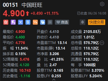 食品股漲幅居前,中國旺旺漲超11%。建銀國際發(fā)表研究報告,指中國旺旺3月底止2024財年純利按年升18%至39.9億元人民幣(下同),分別高過該行及市場預期5%及4%。該行認為,米果類產品及休閑食品類在去年11月的中個位數(shù)價格升幅會持續(xù)支持公司2025財年的收入增長。