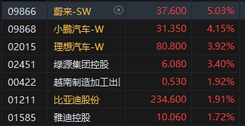 汽車股普遍上漲,蔚來(lái)漲超5%。消息面上,7月3日,工業(yè)和信息化部、公安部、自然資源部、住房和城鄉(xiāng)建設(shè)部、交通運(yùn)輸部公布智能網(wǎng)聯(lián)汽車“車路云一體化”應(yīng)用試點(diǎn)城市名單,北京、上海、深圳、廣州、武漢、重慶、南京、蘇州、成都、杭州-桐鄉(xiāng)-德清聯(lián)合體等在列。