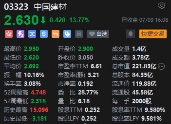 建材水泥股跌幅居前,中國(guó)建材發(fā)盈警跌近14%。據(jù)盈警公告,預(yù)計(jì)6月止上半年虧損約20億元人民幣,相比上年同期凈利潤(rùn)14.04億元人民幣。公告指,預(yù)期盈轉(zhuǎn)虧,主要由于集團(tuán)主要產(chǎn)品水泥、商品混凝土和玻璃纖維的銷(xiāo)售價(jià)格下降、水泥及商品混凝土銷(xiāo)量下降、以及應(yīng)占聯(lián)營(yíng)業(yè)績(jī)下降,但部份被水泥和商品混凝土的銷(xiāo)售成本下降抵銷(xiāo)。