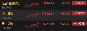 7月11日消息,港股三大指數(shù)高開高走,截至收盤,恒生指數(shù)(17832.33, 360.66, 2.06%)漲2.06%,報17832.33點,恒生科技指數(shù)(3696.49, 96.00, 2.67%)漲2.67%,國企指數(shù)漲1.93%。盤面上,科網(wǎng)股齊漲,馬云現(xiàn)身阿里巴巴漲超3%,京東漲近3%,百度漲超2%,騰訊漲近2%;汽車經(jīng)銷商板塊漲幅居前,中升控股(12.56, 0.74, 6.26%)漲超6%,汽車股亦漲勢強勁,小鵬漲超11%;蘋果概念股集體走強,丘鈦科技(4.99, 0.97, 24.13%)發(fā)盈喜大漲逾24%;“鋰電雙雄”集體沖高,贛鋒鋰業(yè)(17.16, 1.40, 8.88%)漲近9%。