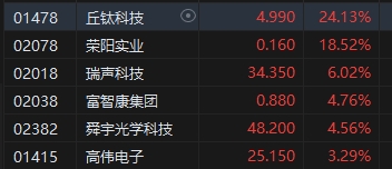 蘋果概念股集體走強,丘鈦科技發(fā)盈喜大漲逾24%。消息面上,丘鈦科技盈喜公告顯示,預(yù)期今年上半年股東應(yīng)占綜合溢利較去年同期的2169.2萬元(單位人民幣,下同),同比增長約400至500%。此外,智能AI功能有望提振iPhone需求,蘋果計劃在2024年將新iPhone出貨量提高10%,預(yù)計今年下半年iPhone 16的出貨量將達到9000萬部。