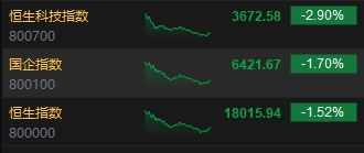 7月15日消息,港股三大指數(shù)低開低走,截至收盤,恒生指數(shù)(18015.939, -277.44, -1.52%)跌1.52%,報18015.94點,恒生科技指數(shù)(3672.58, -109.50, -2.90%)跌2.9%,國企指數(shù)跌1.7%。盤面上,科網(wǎng)股齊挫,嗶哩嗶哩跌超8%,百度跌超5%,京東跌超4%;SaaS概念股跌幅居前,金蝶國際(6.74, -0.96, -12.47%)重挫12%;互聯(lián)網(wǎng)醫(yī)療股跌幅居前,京東健康(21.55, -1.20, -5.28%)跌超5%;黃金股逆勢上漲,中國黃金國際(53.65, 2.20, 4.28%)漲超4%;煤炭股漲幅靠前,南戈壁(3.71, 0.19, 5.40%)漲超5%;醫(yī)藥外包概念股普挫,金斯瑞生物科技(12.54, 2.54, 25.40%)逆勢漲超25%。