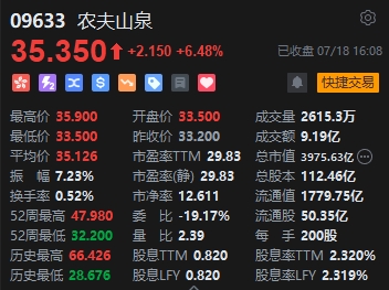 20240718港股收評:恒指漲0.22% 恒生科指跌0.76%農(nóng)夫山泉收漲6.48%