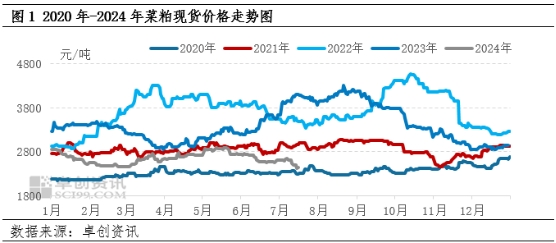 本年度菜粕市場(chǎng)持續(xù)受制于供強(qiáng)需弱的基本面,行情承壓,自5月中下旬至7月15日國內(nèi)菜粕走出一波跌勢(shì),現(xiàn)貨均價(jià)跌至2415元/噸,跌破前期3月份創(chuàng)下的低點(diǎn),亦是近4年來的新低,僅高于2020年。