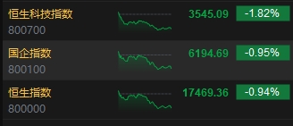 7月23日消息,港股三大指數(shù)高開低走,截至收盤,恒生指數(shù)(17469.359, -166.52, -0.94%)跌0.94%,報(bào)17469.36點(diǎn),恒生科技指數(shù)(3545.09, -65.62, -1.82%)跌1.82%,國(guó)企指數(shù)跌0.95%。盤面上,科網(wǎng)股普遍下跌,美團(tuán)跌超2%,騰訊跌近2%,網(wǎng)易、小米、京東、百度跌超1%;中資券商股集體下挫,中信證券(11.4, -0.52, -4.36%)回吐昨日全部漲幅;有色金屬、半導(dǎo)體等板塊跌幅靠前,華虹半導(dǎo)體(21.95, -1.65, -6.99%)跌近7%;電訊服務(wù)板塊齊漲,中國(guó)聯(lián)通(7.47, 0.15, 2.05%)漲超2%;銀行股集體逆勢(shì)上揚(yáng),郵儲(chǔ)銀行(4.22, 0.11, 2.68%)漲近3%。
