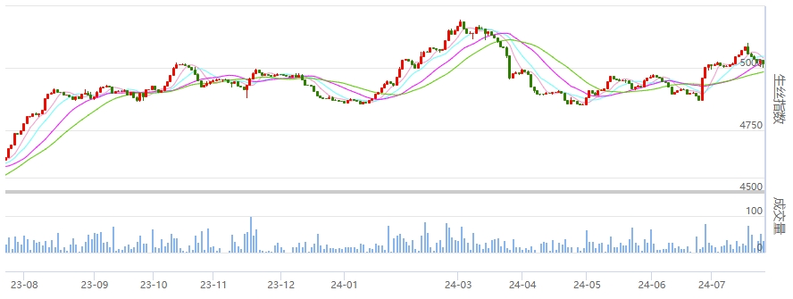 今日(周三)生絲盤面在波動(dòng)中今日繼續(xù)有所上行。240925合約有所減倉(cāng)。由于今日價(jià)格相對(duì)較高的240725生絲合約下市,代之以新上市價(jià)格相對(duì)較低的250925生絲,致使今日生絲指數(shù)相較昨日收綠。請(qǐng)知悉。