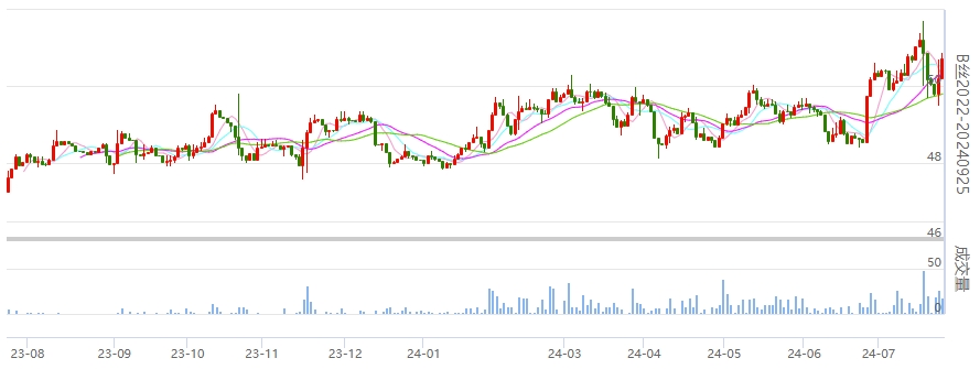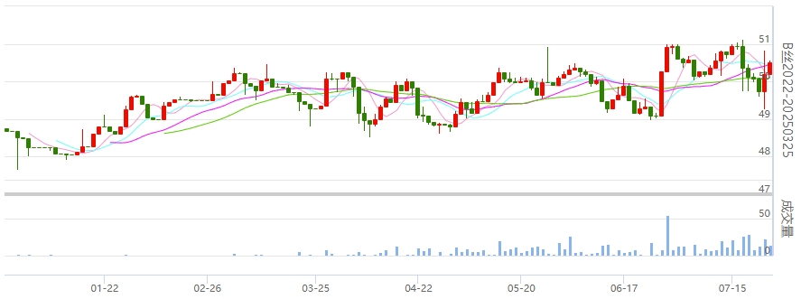 今日(2024年07月24日,周三)中國(guó)繭絲綢交易市場(chǎng)生絲電子指數(shù)報(bào)5019.83點(diǎn)。B絲2022D(商檢4A級(jí)生絲):240825合約上漲0.24萬(wàn)元報(bào)收于50.22萬(wàn)元;240925合約上漲0.51萬(wàn)元報(bào)收于50.73萬(wàn)元;250325合約上漲0.33萬(wàn)元報(bào)收于50.52萬(wàn)元。