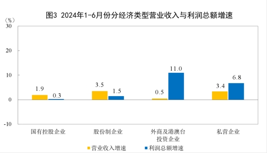 1—6月份,規(guī)模以上工業(yè)企業(yè)中,國有控股企業(yè)實(shí)現(xiàn)利潤總額12083.9億元,同比增長0.3%;股份制企業(yè)實(shí)現(xiàn)利潤總額26243.3億元,增長1.5%;外商及港澳臺投資企業(yè)實(shí)現(xiàn)利潤總額8614.9億元,增長11.0%;私營企業(yè)實(shí)現(xiàn)利潤總額9193.6億元,增長6.8%。