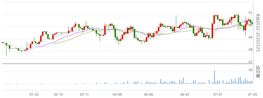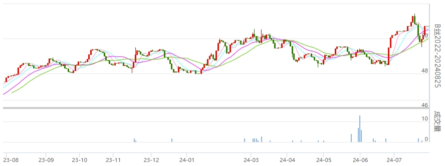 今日(2024年07月29日,周一)中國繭絲綢交易市場生絲電子指數(shù)報(bào)平收5041.57點(diǎn)。B絲2022D(商檢4A級(jí)生絲):240825合約報(bào)平收于50.73萬元;240925合約報(bào)平收于50.61萬元;250325合約下跌0.09萬元報(bào)收于50.28萬元。