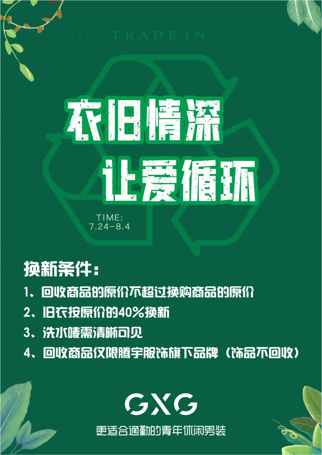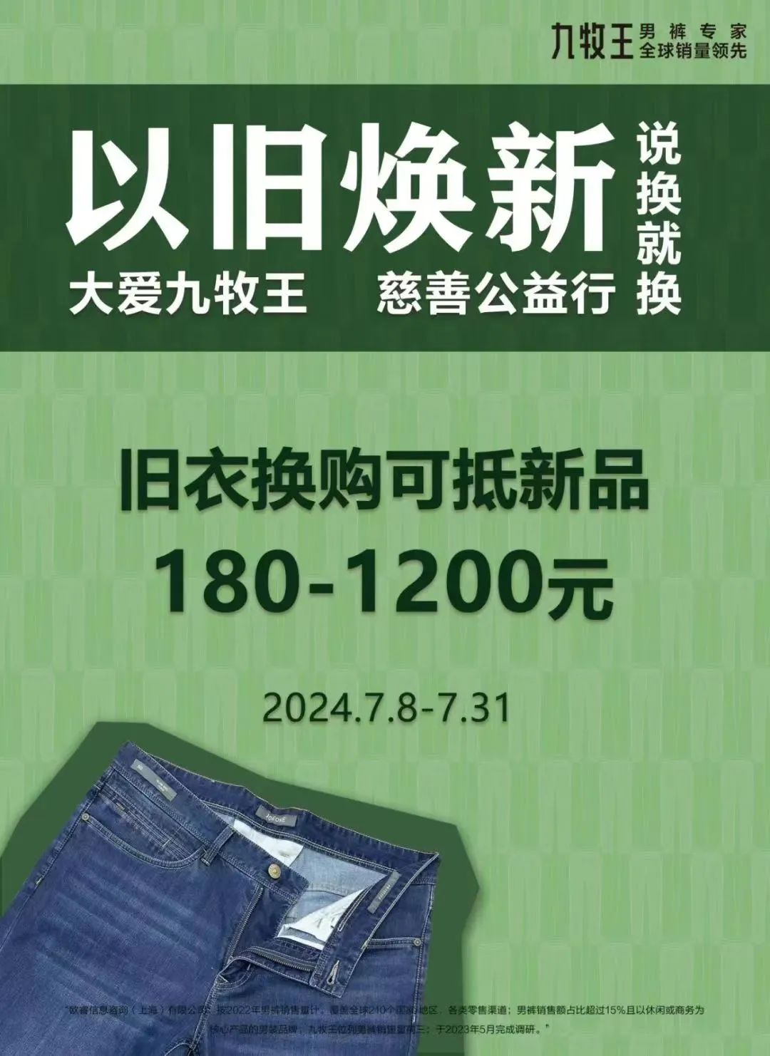 男裝GXG、九牧王等品牌在全國很多地方也正在進(jìn)行“以舊換新”的促銷活動(dòng)。