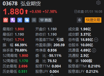 7月31日消息,港股三大指數(shù)高開高走,截至收盤,恒生指數(shù)(17344.6, 341.69, 2.01%)漲2.01%,報(bào)17344.6點(diǎn),恒生科技指數(shù)(3516.87, 102.83, 3.01%)漲3.01%,國企指數(shù)漲2.01%。盤面上,科網(wǎng)股普遍上漲,快手漲超4%領(lǐng)銜,小米漲超3%,美團(tuán)、網(wǎng)易、騰訊漲超2%,京東、阿里巴巴漲超1%;醫(yī)藥外包概念股全天漲幅居前,藥明生物(11.52, 1.02, 9.71%)漲近10%;中資券商股集體高漲,弘業(yè)期貨(1.88, 0.69, 57.98%)漲近58%領(lǐng)銜,中金公司(8.71, 0.69, 8.60%)、中國銀河(4, 0.30, 8.11%)漲超8%;重型機(jī)械股漲勢活躍,中國重汽(20.55, 1.57, 8.27%)漲超8%;SaaS概念股齊漲,金蝶國際(6.27, 0.61, 10.78%)漲超10%;家電股漲勢強(qiáng)勁,海信家電(25.25, 2.25, 9.78%)漲超10%。