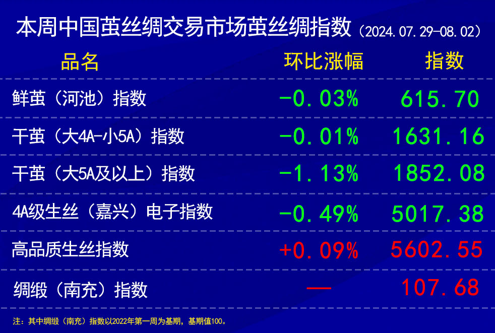 本周中國繭絲綢交易市場繭絲綢指數(shù)