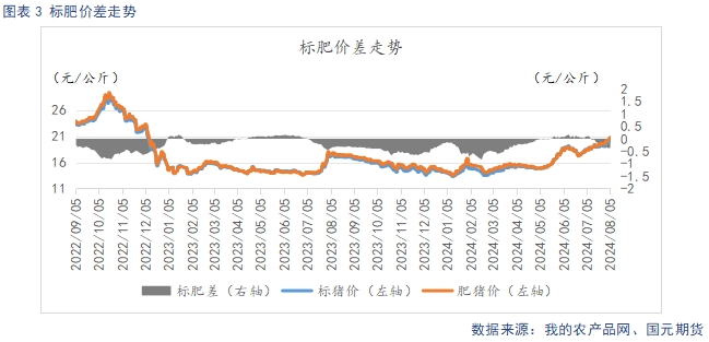 截止8月5日,生豬出欄均價20.39元/公斤,較上周環(huán)比上漲1.17元/公斤。標肥價差-0.37元/公斤,較上周縮窄0.01元/公斤。月初規(guī)模場出欄節(jié)奏放緩,標肥價差倒掛下,支撐養(yǎng)殖端壓欄、二育信心,價格快速走強。