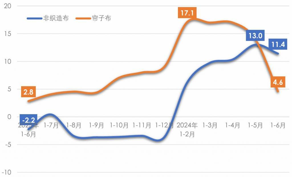 圖3我國規(guī)模以上企業(yè)非織造布和簾子布產(chǎn)量增速情況