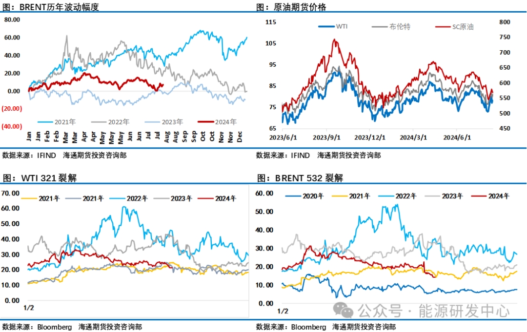 油價(jià)周線收出了一根長(zhǎng)長(zhǎng)上影線,過去一周地緣成為了油價(jià)波動(dòng)的核心因素,再疊加一些宏觀及供需層面的影響,油價(jià)整體表現(xiàn)為沖高回落,過程走勢(shì)反復(fù)。周五下午歐洲時(shí)段油價(jià)出現(xiàn)快速下跌走勢(shì)讓不少投資者感到意外,在沒有出現(xiàn)新的突發(fā)利空消息情況下,油價(jià)突然走出一波流暢的下跌,在這之前一天市場(chǎng)情緒正在從衰退擔(dān)憂中走出,市場(chǎng)風(fēng)險(xiǎn)偏好有所回升,但周五下午油價(jià)還是走出了短線快速回落,這樣的走勢(shì)顯示出投資者觀點(diǎn)近期的搖擺。一方面中東地緣進(jìn)展本周懸而未決,且加沙停火談判仍在進(jìn)行階段,結(jié)果仍存在不確定性,而宏觀層面各類經(jīng)濟(jì)數(shù)據(jù)也讓投資者預(yù)期不斷變化,對(duì)于諸多不確定性不少投資者很容易改變觀點(diǎn),持倉(cāng)數(shù)據(jù)顯示在周初地緣升溫之際歐美市場(chǎng)投機(jī)凈多頭出現(xiàn)了明顯的回升,但隨后的下跌預(yù)計(jì)其凈多持倉(cāng)會(huì)再次回落。而市場(chǎng)處于這種不確定性的階段,部分資金利用其規(guī)模優(yōu)勢(shì)放大油價(jià)波動(dòng)實(shí)現(xiàn)盈利,給市場(chǎng)參與者帶來了挑戰(zhàn)。
