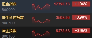 8月26日消息,今日港股三大指數(shù)午后再度回升,截至收盤,恒生指數(shù)(17798.73, 186.63, 1.06%)漲1.06%,報17798.73點,恒生科技指數(shù)(3502.96, 34.02, 0.98%)漲0.98%,國企指數(shù)漲0.95%。盤面上,科網(wǎng)股多數(shù)上漲,嗶哩嗶哩績后漲7%領(lǐng)銜,騰訊漲近2%,百度、美團漲超1%;醫(yī)藥外包概念股漲幅居前,藥明生物(10.96, 0.70, 6.82%)漲超6%;內(nèi)房股紛紛走強,旭輝控股集團(0.255, 0.01, 5.81%)漲近6%;黃金股多數(shù)上漲,招金礦業(yè)(14.06, 0.38, 2.78%)漲超%;金屬礦物板塊集體走強,南方錳業(yè)(0.38, 0.07, 20.64%)漲超20%。