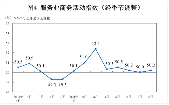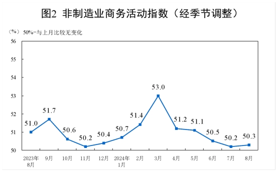 8月份,非制造業(yè)商務活動指數(shù)為50.3%,比上月上升0.1個百分點,非制造業(yè)景氣水平略有回升。