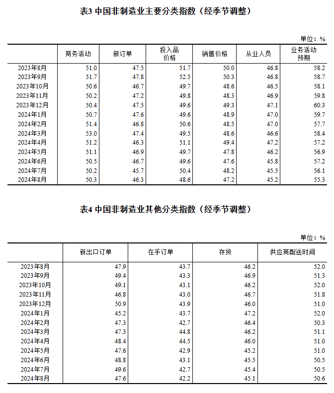 8月份,綜合PMI產(chǎn)出指數(shù)為50.1%,比上月下降0.1個百分點,繼續(xù)位于擴張區(qū)間,表明我國企業(yè)生產(chǎn)經(jīng)營活動總體保持小幅擴張。