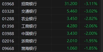 銀行股集體下挫,招商銀行、交通銀行跌超3%。有消息稱中國考慮下調存量房貸利率,瑞銀大中華金融(0.01, 0.00, 0.00%)行業(yè)研究主管顏湄之表示,現時存量房貸利率平均達逾4.1%,而新的房貸利率僅3.3%,甚至有一線城市降至低于3%,相差太大,預計央行或在數月后下調存量房貸利率。若存量房貸利率下調1%,而存款利率不降,估算會拖累內銀凈息差收窄0.11%,對利潤造成10%以上的負面影響,預料銀行會下調存款利率作對沖。