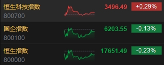 9月3日消息,今日港股三大指數全天低迷,截至收盤,恒生指數(17651.49, -40.48, -0.23%)跌0.23%,報17651.49點,恒生科技指數(3496.49, 10.09, 0.29%)漲0.29%,國企指數跌0.13%。盤面上,科網股漲跌不一,美團漲超2%,阿里巴巴漲近1%,網易、快手跌超1%;銀行股集體下挫,招商銀行(31.2, -1.00, -3.11%)、交通銀行(5.46, -0.17, -3.02%)跌超3%;煤炭股跌幅居前,中煤能源(9.3, -0.22, -2.31%)、中國神華(32.5, -0.75, -2.26%)跌超2%;股權高度集中被點名,升能集團(0.325, -19.93, -98.39%)股價暴跌98.4%后停牌;醫(yī)藥外包概念股漲勢活躍,金斯瑞生物科技(12.08, 0.48, 4.14%)漲近4%;家電股漲幅居前,海信家電(21.55, 0.90, 4.36%)漲超4%。