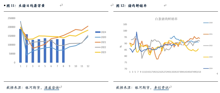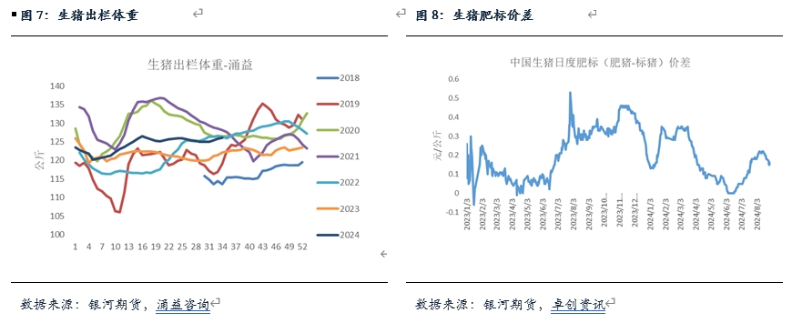 總體來看,我們傾向于8月期間生豬出欄量有所減少,這一方面源于前期仔豬新增供應(yīng)量有所下滑,按照正常的生長周期來看,本月內(nèi)生豬的適重豬源數(shù)量有所增加;另一方面,從各個群體綜合表現(xiàn)來看,雖然二次育肥和規(guī)模場有所增加,但集團(tuán)場和散戶是處于明顯下降的狀態(tài)。二次育肥供應(yīng)量的增加以及整體生豬出欄體重的增加一定程度彌補(bǔ)了總體量的缺失,但總體背景下,8月份實際供應(yīng)仍然處于下降狀態(tài)。不過,進(jìn)入9月以后,成豬供應(yīng)環(huán)比預(yù)計有所增加,并且前期二育消化并不徹底,在此背景下,豬價上方預(yù)計仍有壓力,后續(xù)要重點關(guān)注需求改善情況。
