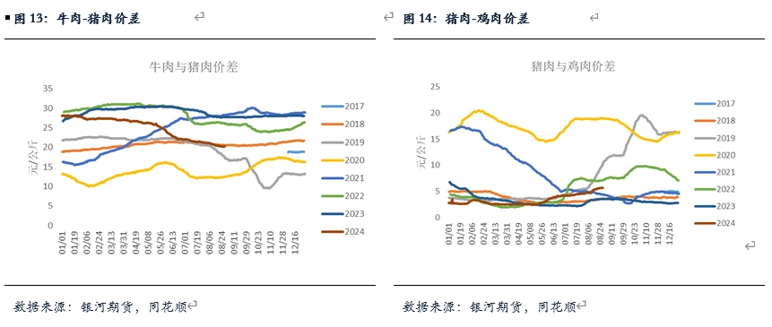 整體來看,月內(nèi)豬肉比價繼續(xù)呈現(xiàn)走弱,截止當(dāng)前,牛肉與豬肉價差下跌至20.3元/斤,豬肉與雞肉價差上升至5.65元/斤。豬肉消費(fèi)可能會一定程度因為其他肉類價格優(yōu)勢受到?jīng)_擊,后續(xù)還需繼續(xù)關(guān)注。不過9月通常是豬肉消費(fèi)好轉(zhuǎn)的季節(jié),一方面因為季節(jié)性因素的帶動,另一方面,凍品庫存在持續(xù)下滑后,后續(xù)可能會帶來一定的補(bǔ)庫需求,在此背景下,大方向豬肉需求下跌空間有限。