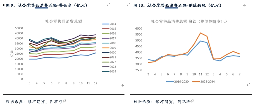 7月市場消費(fèi)表現(xiàn)稍好于預(yù)期,社零口徑餐飲類消費(fèi)同比增加大約3%,考慮到物價水平變化,剔除價格指數(shù)后,對比2019年同比增速大約為5.6%,雖然剔除價格變化指數(shù)較6月增速有所放緩,但整體年內(nèi)仍然處于相對高位,反應(yīng)總體消費(fèi)情況尚可。