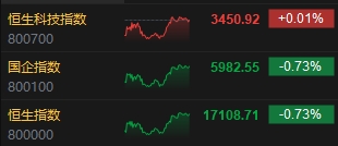 9月11日消息,今日港股三大指數(shù)午后拉升,截至收盤,恒生指數(shù)(17108.711, -125.38, -0.73%)跌0.73%,報(bào)17108.71點(diǎn),恒生科技指數(shù)(3450.92, 0.19, 0.01%)漲0.01%,國企指數(shù)跌0.73%。盤面上,科網(wǎng)股多數(shù)轉(zhuǎn)漲,小米漲超1%,百度、騰訊、美團(tuán)漲超0.4%;石油股探底回升,中石化午后跌幅收窄跌近3%;體育用品股個(gè)別重挫,滔搏(2.23, -0.43, -16.16%)跌超16%;銀行股紛紛走低,農(nóng)業(yè)銀行(3.4, -0.13, -3.68%)跌超3%;醫(yī)藥外包概念股逆勢(shì)上漲,藥明康德(34.4, 2.20, 6.83%)漲近7%;家電股普漲,海信家電(21.5, 1.15, 5.65%)漲超5%。