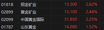 黃金股延續(xù)昨日漲勢,招金礦業(yè)漲超2%。消息面上,近日國際金價再度刷新歷史新高,COMEX黃金一度沖至2617.4美元,現(xiàn)貨黃金則最高漲至2589.68美元。市場正聚焦美聯(lián)儲將于北京時間9月19日凌晨公布的利率決議。根據(jù)芝商所的美聯(lián)儲觀察工具,市場目前預計美聯(lián)儲降息50個基點的可能性升至59%,高于上周五的43%。