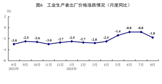 8月份,全國工業(yè)生產(chǎn)者出廠價格同比下降1.8%,環(huán)比下降0.7%;全國工業(yè)生產(chǎn)者購進價格同比下降0.8%,環(huán)比下降0.6%。1-8月份,全國工業(yè)生產(chǎn)者出廠價格和購進價格同比分別下降1.9%和2.1%。