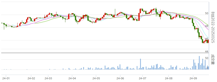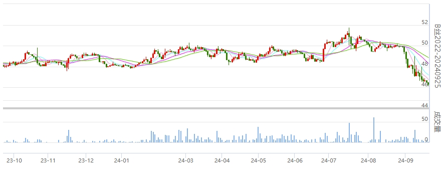 今日(2024年09月20日,周五)中國繭絲綢交易市場生絲電子指數(shù)下跌0.23%報收于4578.83點,本周生絲指數(shù)下跌0.71%。B絲2022D(商檢4A級生絲):240925合約下跌0.18萬元報收于46.32萬元;250325合約上漲0.39萬元報收于46.02萬元;250925合約上漲0.15萬元報收于45.63萬元。