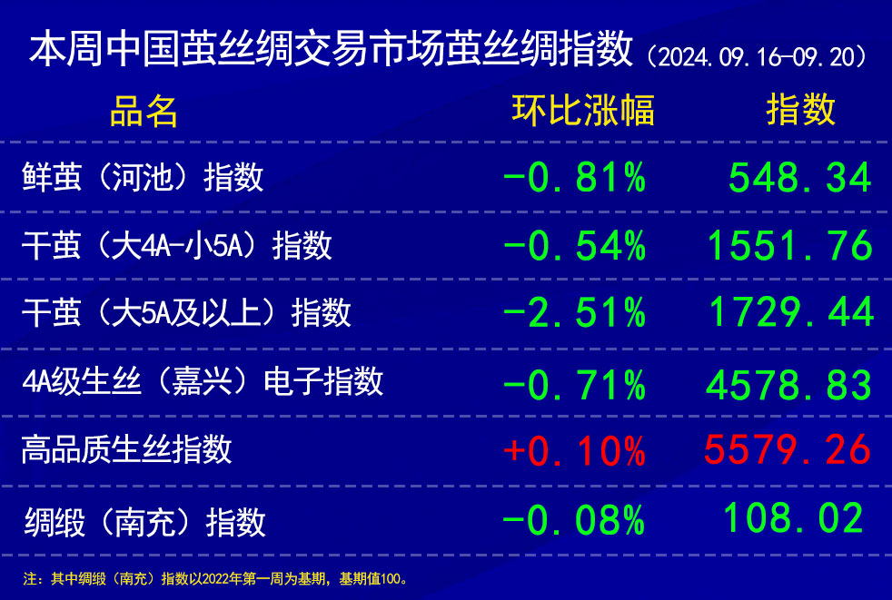本周中國繭絲綢交易市場繭絲綢指數(shù)
