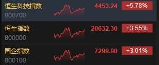 9月27日消息,今日港股三大指數(shù)漲勢如虹,午后漲幅短暫回落后再度拉升,截至收盤,恒生指數(shù)(20632.301, 707.72, 3.55%)漲3.55%,報20632.3點,大市成交額超4400億港元創(chuàng)歷史新高,恒生科技指數(shù)(4453.24, 243.53, 5.79%)漲5.78%,國企指數(shù)漲3.01%。盤面上,科網(wǎng)股普漲,京東漲近10%,美團漲超8%,阿里巴巴漲近5%;醫(yī)藥外包概念股漲幅居前,藥明康德(51.4, 9.90, 23.86%)漲近24%;AH股全面爆發(fā),中資券商股飆漲,中金公司(12.52, 1.90, 17.89%)漲近18%;內(nèi)房股集體走強,金輝控股(3.75, 0.92, 32.51%)漲超32%;七部門聯(lián)合發(fā)文,乳制品股漲勢活躍,蒙牛乳業(yè)(18.46, 2.40, 14.94%)漲近15%領(lǐng)銜;旅游股漲勢強勁,同程旅行(19.26, 2.44, 14.51%)漲超14%。