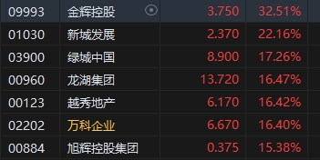 內(nèi)房股集體走強,金輝控股漲超32%。消息面上,中共中央政治局9月26日召開會議,會議強調(diào),要促進房地產(chǎn)市場止跌回穩(wěn),對商品房建設(shè)要嚴控增量、優(yōu)化存量、提高質(zhì)量,加大“白名單”項目貸款投放力度,支持盤活存量閑置土地。要回應(yīng)群眾關(guān)切,調(diào)整住房限購政策,降低存量房貸利率,抓緊完善土地、財稅、金融等政策,推動構(gòu)建房地產(chǎn)發(fā)展新模式。