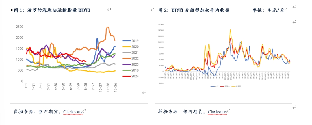 原油(607, -8.60, -1.40%)油輪9月維持震蕩走勢(shì),價(jià)格中樞較8月有所下移,不過仍處于歷史同期相對(duì)高位水平。截至9月24日,波羅的海原油運(yùn)價(jià)指數(shù)本月均值為880.59,環(huán)比下跌4.93%,同比去年上漲18.79%。截至9月24日,VLCC、蘇伊士船型和阿芙拉船型9月長期加權(quán)日度平均收益分別為35763、35364和25476美元/天,環(huán)比+15.02%、+7.40%和-16.59%。