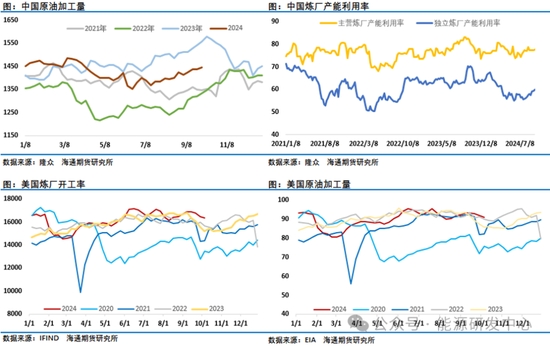 除此供應(yīng)端利比亞央行危機(jī)結(jié)束,其東部政府已承諾解除石油封鎖,關(guān)閉油田的重啟及出口恢復(fù)尚需時(shí)日,但市場(chǎng)已經(jīng)預(yù)期先行。另外美國(guó)安全和環(huán)境執(zhí)法局(BSEE)稱由于熱帶風(fēng)暴海倫妮,美國(guó)墨西哥灣24%的石油生產(chǎn)和18%的天然氣生產(chǎn)被迫暫停。地緣方面近期以色列對(duì)真主黨打擊力度逐步加大,9月27日以色列空軍襲擊了位于黎巴嫩首都貝魯特的黎真主黨總部。真主黨領(lǐng)導(dǎo)人納斯魯拉遇襲身亡,中東地緣風(fēng)險(xiǎn)雖然已經(jīng)很難再讓市場(chǎng)過度擔(dān)憂,但黎以沖突加劇還是會(huì)對(duì)油價(jià)有一定影響。供應(yīng)端消息頻出這也是近期影響油價(jià)波動(dòng)的最重要因素。