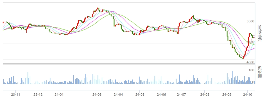 現(xiàn)貨面上,織造企業(yè)繼續(xù)按照剛需進行拿貨。生絲作為產(chǎn)業(yè)鏈中的重要一環(huán),其價格波動不僅受到原料成本、下游需求等基本面因素的影響,還與宏觀經(jīng)濟環(huán)境、政策導(dǎo)向等宏觀因素緊密相連。9月下旬以來,生絲價格出現(xiàn)反彈,這一現(xiàn)象背后,是宏觀環(huán)境、估值修復(fù)以及自身供需邊際有所好轉(zhuǎn)等多重因素的共同作用。在全年蠶繭生產(chǎn)大局即將定下之時,在外圍的寬幅震蕩之中,仍需要重點關(guān)注消費面的進展。