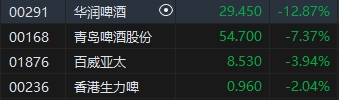 啤酒股跌幅居前,華潤(rùn)啤酒跌近13%。國(guó)信證券指出,國(guó)慶長(zhǎng)假啤酒消費(fèi)反饋偏淡,一方面積極的宏觀政策傳導(dǎo)至消費(fèi)力的提升還需要一定的時(shí)間,另一方面,啤酒行業(yè)已轉(zhuǎn)入淡季。整體看,當(dāng)前市場(chǎng)對(duì)下半年啤酒龍頭的業(yè)績(jī)表現(xiàn)預(yù)期不高,而當(dāng)下宏觀政策已明確發(fā)力,明年隨著需求逐步改善,啤酒行業(yè)有望在健康的庫(kù)存水平、低銷量基數(shù)之上迎來(lái)修復(fù)彈性。
