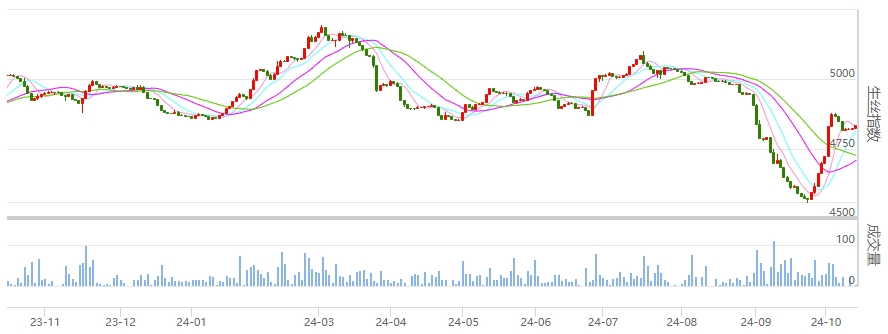 宏觀層面,9月末包括繭絲在內(nèi)的中國(guó)資產(chǎn)的的一輪上漲是在美國(guó)降息的背景下。目前美國(guó)就業(yè)數(shù)據(jù)等數(shù)據(jù)高于預(yù)期,市場(chǎng)猜測(cè)后續(xù)降息概率在下降。同時(shí),中國(guó)穩(wěn)經(jīng)濟(jì)一攬子政策陸續(xù)落實(shí),市場(chǎng)也在關(guān)注后續(xù)是否有政策面持續(xù)利好繼續(xù)出臺(tái)。