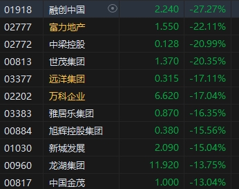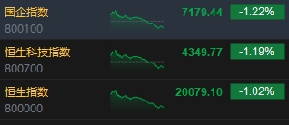 10月17日消息,今日港股三大指數(shù)高開(kāi)低走,截至收盤(pán),恒生指數(shù)(20079.102, -207.75, -1.02%)跌1.02%,報(bào)20079.1點(diǎn),恒生科技指數(shù)(4349.77, -52.60, -1.20%)跌1.19%,國(guó)企指數(shù)跌1.22%。盤(pán)面上,科網(wǎng)股普跌 ,網(wǎng)易、快手跌超2%,美團(tuán)跌近2%,百度、騰訊跌近1%;房股全天放量大跌,融創(chuàng)中國(guó)(2.24, -0.84, -27.27%)跌超27%,物管股、建材水泥股跟隨走低;中資券商股普遍下挫,中信證券(18.7, -0.90, -4.59%)跌超4%;餐飲股紛紛走低,海倫司(2.15, -0.17, -7.33%)、九毛九(3.22, -0.25, -7.21%)跌超7%。