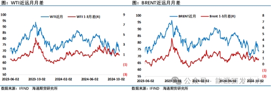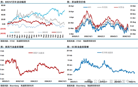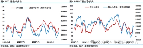 在窄幅橫盤三個(gè)交易日后,油價(jià)沒(méi)有突破窄幅震蕩平臺(tái)走出有效反彈,而是在周五夜盤油價(jià)進(jìn)一步下挫,地緣層面繼續(xù)降溫讓原油(607, -8.60, -1.40%)繼續(xù)擠出地緣溢價(jià),部分做多資金繼續(xù)選擇了離場(chǎng),最終單周油價(jià)大跌超7%。行情劇烈波動(dòng)的背后是交易者的無(wú)奈,上期周報(bào)中提到了在伊朗導(dǎo)彈襲擊以色列之后的第一周截至10月8日的持倉(cāng)數(shù)據(jù)中,布倫特投機(jī)凈多頭寸單周增加近12.3萬(wàn)手,地緣風(fēng)險(xiǎn)迫使基金再次大幅回補(bǔ)了凈多單持倉(cāng),而一周之后到10月15日油價(jià)溢價(jià)從高位大跌了7美元,但是持倉(cāng)數(shù)據(jù)顯示布倫特原油期貨投機(jī)性凈多頭頭寸減少只是減少了2.8萬(wàn)手,這意味著大量的追漲資金被套在了高位。而隨著地緣層面風(fēng)險(xiǎn)進(jìn)一步降溫,最近幾天油價(jià)進(jìn)一步下滑,不出意外這期間十一假期追漲的投機(jī)性資金進(jìn)一步止損離場(chǎng)。今年以來(lái)這樣的場(chǎng)景已經(jīng)多次出現(xiàn),在市場(chǎng)的劇烈變化面前,投機(jī)性資金的應(yīng)對(duì)吃力且被動(dòng),這背后反映了原油市場(chǎng)一些不確定性因素給交易者帶來(lái)了挑戰(zhàn)。