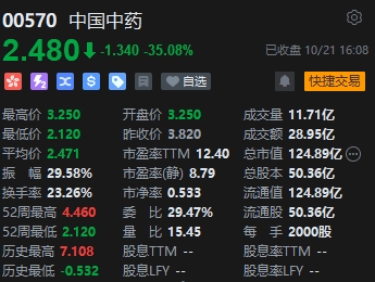 中醫(yī)藥概念股跌幅居前,中國(guó)中藥跌超35%。中國(guó)中藥宣布,國(guó)藥集團(tuán)共裕按每股4.6港元將公司私有化的先決條件仍未得到滿足。因此,建議于10月18日失效,股份在聯(lián)交所的上市地位將不會(huì)撤銷。