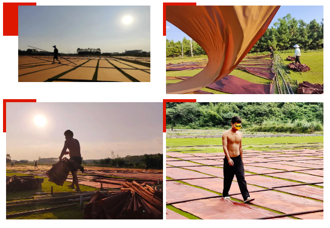 廣西的蒙山、橫縣、上林等地的香云紗曬場(chǎng)。近年來(lái),廣西利用當(dāng)?shù)氐耐恋亍⑷藛T和氣候優(yōu)勢(shì),正大力承接廣東香云紗產(chǎn)業(yè)的部分環(huán)節(jié)。兩廣共譜協(xié)作曲。