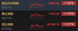 10月23日消息,今日港股三大指數(shù)高開(kāi)高走,截至收盤(pán),恒生指數(shù)(20760.15, 261.20, 1.27%)漲1.27%,報(bào)20760.15點(diǎn),恒生科技指數(shù)(4605.62, 83.99, 1.86%)漲1.86%,國(guó)企指數(shù)漲1.56%。盤(pán)面上,科網(wǎng)股普遍走強(qiáng),美團(tuán)漲超5%,小米漲超4%,京東漲近3%,騰訊漲超1%;光伏股漲幅居前,福萊特玻璃(13, 1.52, 13.24%)漲超13%;汽車(chē)股延續(xù)漲勢(shì),吉利汽車(chē)(14.54, 0.90, 6.60%)、理想汽車(chē)漲超6%;券商股表現(xiàn)活躍,申萬(wàn)宏源(2.47, 0.10, 4.22%)漲超4%。